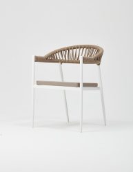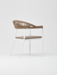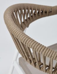 Adel armchair with aluminum frame, knitted with rope suitable for outdoor use, is stackable. Suitable for use in all outdoor conditions, the Adel armchair is produced with a stainless strong aluminum frame structure.