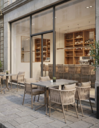 Macka bar chair with aluminum frame, knitted with rope suitable for outdoor use. Suitable for use in all outdoor conditions, the Macka bar chair is produced with a stainless strong aluminum frame structure.
